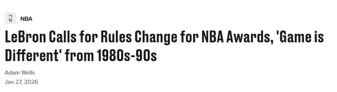 北京时间1月28日,詹姆斯在最新一期的播客中提到了联盟的65场评奖规则,他公开呼吁联盟废除这一规则。赛季至今,詹姆斯已经缺阵17场比赛,再休战一场就将无缘评奖。随着2025-26赛季NBA最有价值球员的争夺逐渐白热化,而众多往年的热门人选却因参赛场次不足,将大概率无缘各类奖项评选。
