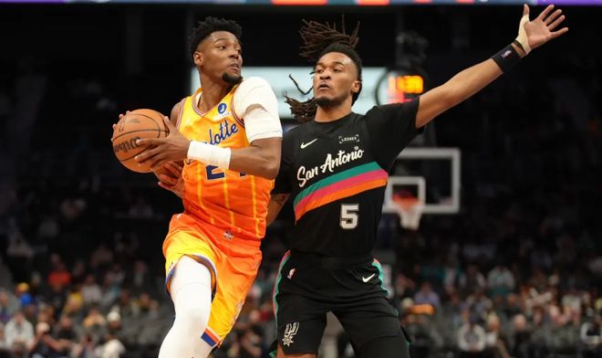 连斩魔术、奇才、76人、灰熊和独行侠,正处于五连胜的黄蜂,在这一个比赛日,坐镇主场迎战天赋满满的西部新贵马刺,本场比赛文班亚马表现不佳,被二轮秀迪亚巴特压了一头,而榜眼秀米勒则砍下了全队最高分,帮助黄蜂以111-106力克马刺,豪取六连胜。