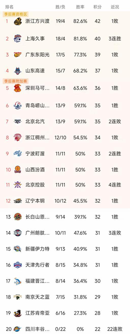 CBA最新积分榜