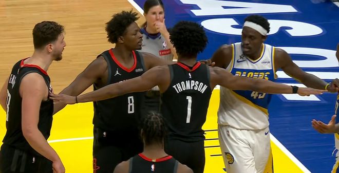 由于内线防不住,步行者甚至被迫上了替补中锋以赛亚杰克逊去防申京,这就属于是没有办法了,因为步行者内线就没有人顶得住他。对面的首发中锋胡夫被申京打得11分钟5个犯规,根本顶不住,他可能有很多问题,但是说实话火箭真的不能没有他,除了申京,火箭全队自己创造进攻机会的能力,就只有杜兰特才有,而这场KD还休息。所以申京对球队真的还是很重要的,虽然缺点很多,但是没他火箭更不行。