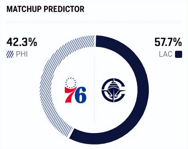 这是本赛季两队的第二次交锋,前一次交手,76人在主场以2分之差险胜快船,稍占上风。赛前,美媒ESPN对本场比赛进行了胜率预测,快船队胜率为57.7% ,76人队胜率则仅有42.3%,处于劣势。