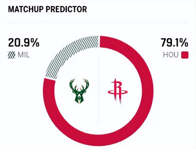 赛前,美媒ESPN对本场比赛进行了胜率预测,火箭队胜率高达79.1% ,雄鹿胜率则仅有20.9% ,差距还挺明显。