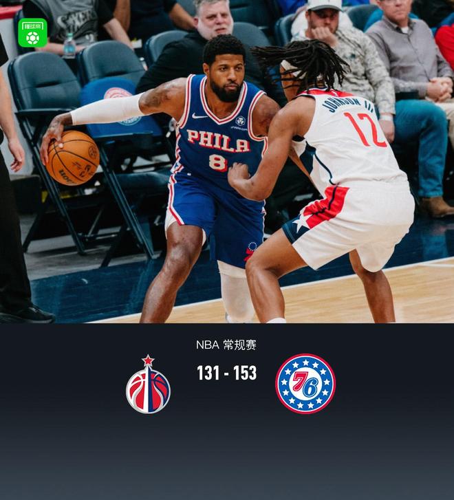 第三节奇才吉尔拿下8分,76人保罗-乔治拿下15分,第三节结束奇才103-120落后76人