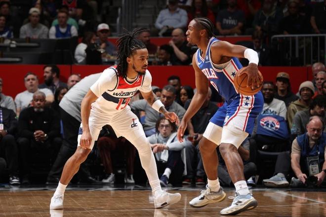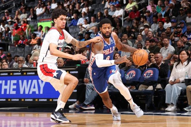 76人上一场客场109-119输给热火,奇才过去3场连续客场输给勇士、开拓者与湖人遭遇3连败,本赛季前三次交锋76人均战胜奇才。本场76人缺少恩比德与布鲁姆,奇才缺少浓眉哥、特雷-杨、拉塞尔等。首节开局76人10-8领先,76人一波8-0攻势扩大10分优势,乔治接连得分率队维持21-11领先。奇才追到差6分,格莱姆斯上篮得分,奇才一波9-4攻势追到差3分,76人连得5分,奇才再追2分,首节结束76人35-29领先奇才。首节乔治7中5得到14+2+2,武克切维奇4中3得到10分。
