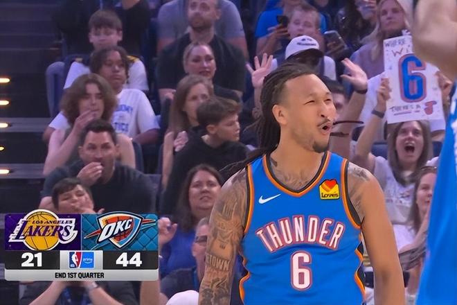 而雷霆方面,作为卫冕冠军,他们今天还是展现了超强实力。奇兵多特疯狂输出,单节5投5中,三分球4投4中,拿下14分,两次打停湖人!要知道,多特场均只有8.3分进账,今天9分钟就拿下了14分,超水平发挥。亚历山大手感也一般,10投4中,拿下8分4助攻,内线双塔切特和哈滕都拿下4分,杰伦威廉姆斯拿下2分,以赛亚乔拿下3分,杰林威廉姆斯最后0.6秒造成詹姆斯三分犯规,拿下6分。