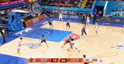 半场休息归来,宁波队手感回暖,打出一波10比2。上海男篮的进攻也没有断电,古德温与怀特塞德上演空中接力,现场“哇”声一片。