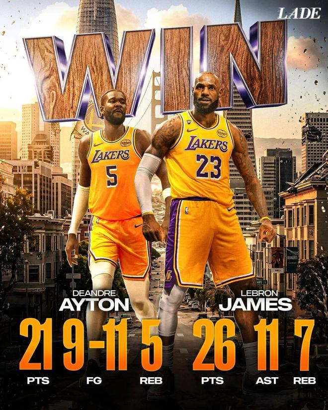 这场湖人的两位状元是主角,詹姆斯全场拿下26分8篮板11助攻准三双,艾顿也得到21分5篮板,两人加起来一共28中20,效率极高。