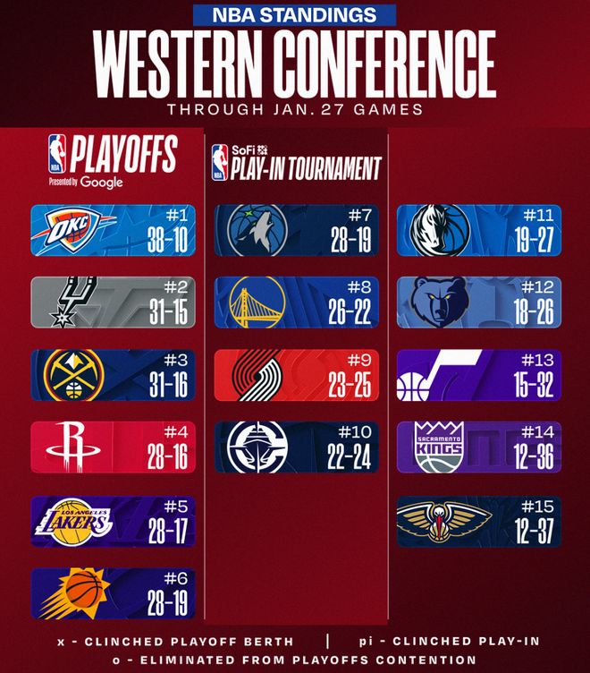 本赛季NBA西部前十球队!大概率就是这10支,3大豪门或出局