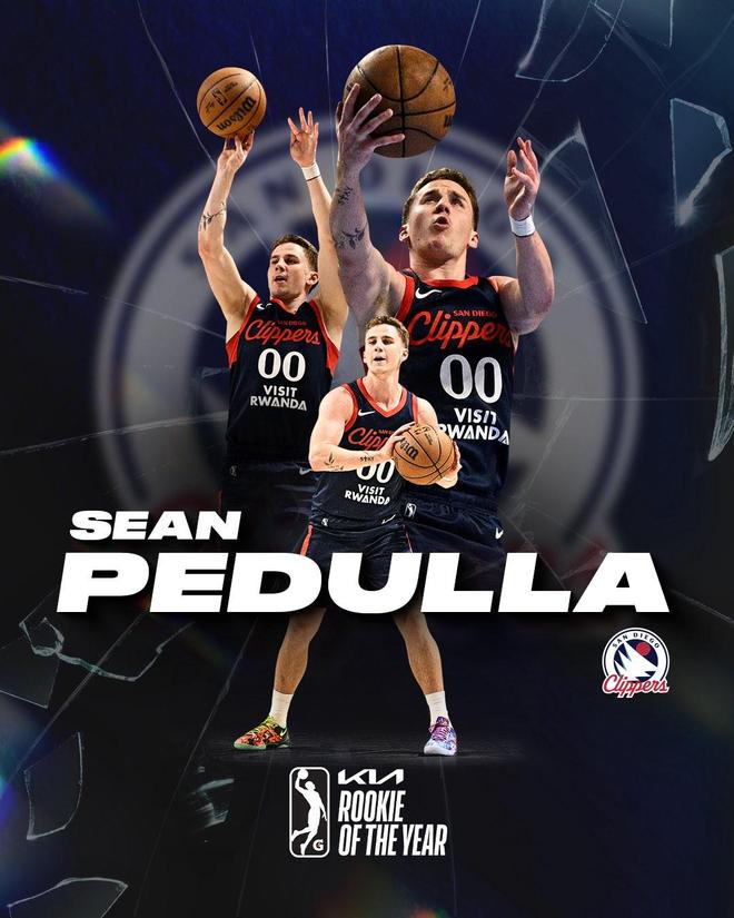 官方:快船双向合同后卫肖恩-佩杜拉当选G联赛最佳新秀